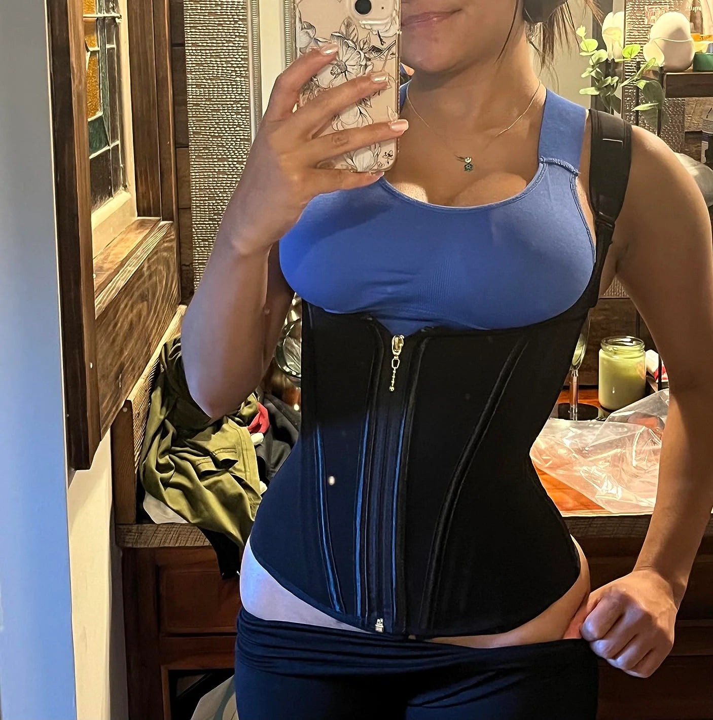 SHAPSHE Waist Shapewear is made of double fabrics. The inner layer is designed with mesh, it is lightweight, breathable, and sweat-wicking, which is more suitable as a workout waist shapewear for women. The outer layer is 80% nylon + 20% spandex, high-elastic fabric to allow you to stretch freely.SHAPSHE Waist Shapewear adopts a U-shaped design to make your chest straight, and 17 elastic memory steel bones surround it to enhance the support of the waist, back, and abdomen in all directions.The Double Tummy Control Effect is because it has 3 rows of adjustable hook-and-eye closures to provide you with a more suitable size. The metal zipper is beautiful and practical, and it is invisible after the zipper is closed. And the adjustable shoulder strap with shoulder pads can be adjusted according to your needs. The workmanship is exquisite, and the perfect seaming process highlights the quality.